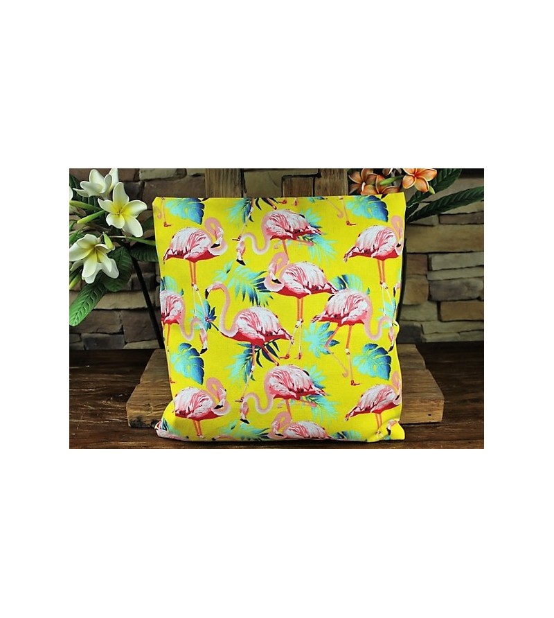 Housse Coussin Flamingo Yellow Imprimé Une Face Coton/Lin 45*45